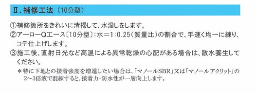 ・急速反応性の既調合特殊セメントで、水で練るだけで凝結硬化します。